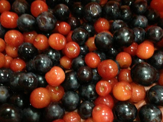 在大理买了好多樱桃和蓝莓,20元一斤,个不大很甜,店主帮忙洗好了,放到旅行水壶里,边走边吃。