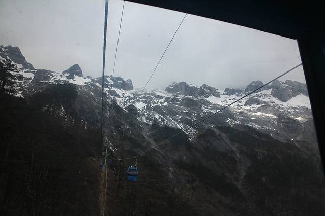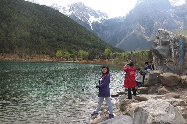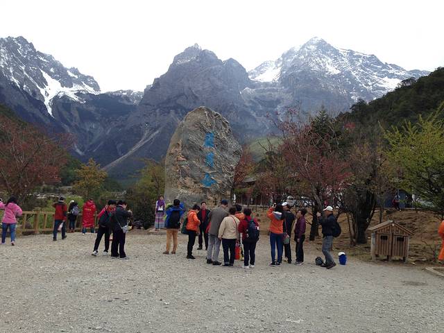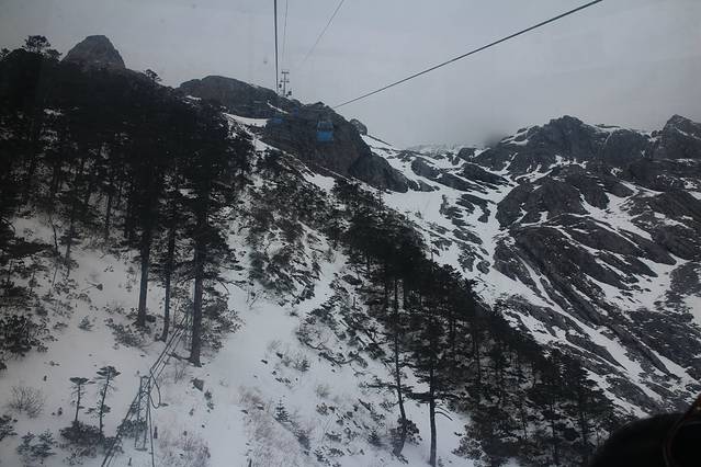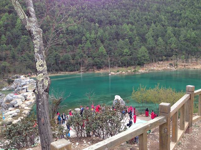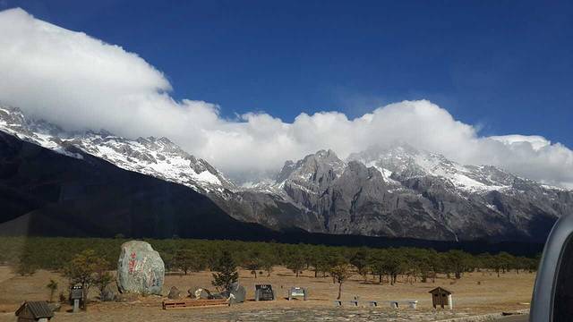 下一个景点是蓝月谷,乘坐景区的大巴。从皑皑白雪穿越到青山绿水,有点不适应。