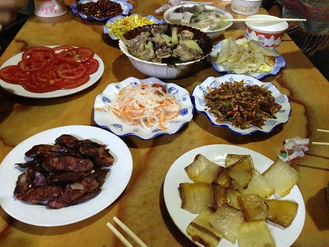 晚饭是在多吉次里家吃的,右下角那盘就是腊肉,有了客人才做的。
