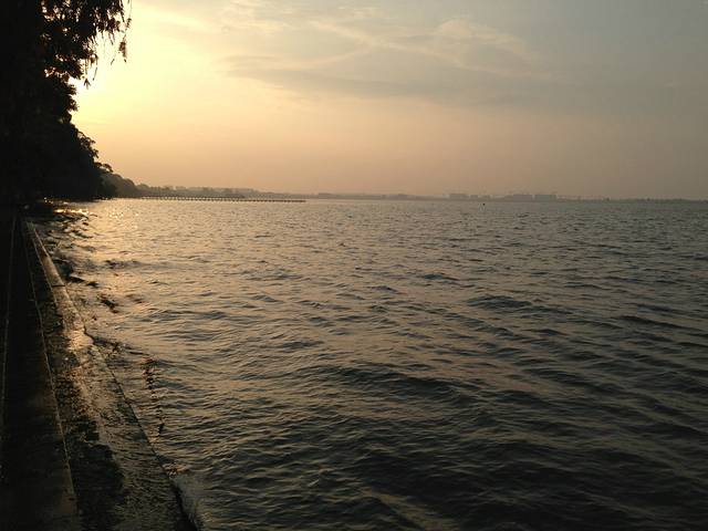 不到7点,到达滇池。阴天,可以看到日出后的海面。公园里很安静,只有为数不多的几个人在晨练。