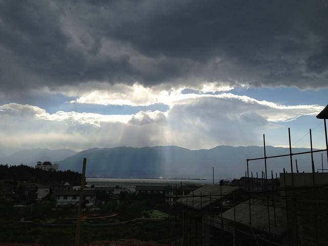从阳台向下望去,是静静的洱海,请忽略那些建筑工地