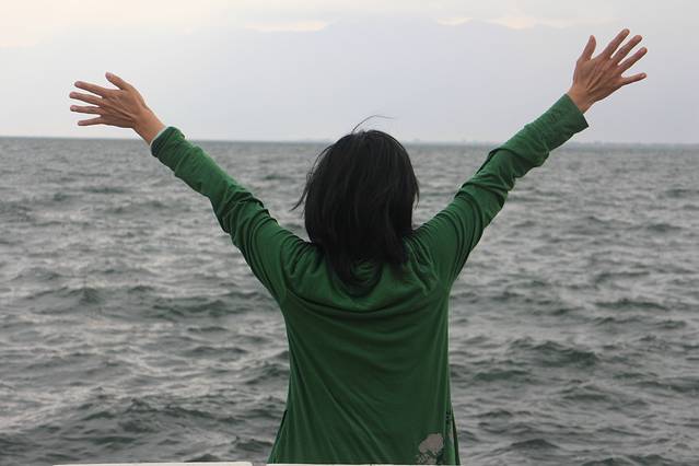 所以坐在椅子上背朝大海,还要开心也怪难受的,倒是面朝大海时喊出来的俺一嗓子才是真的被吓的
