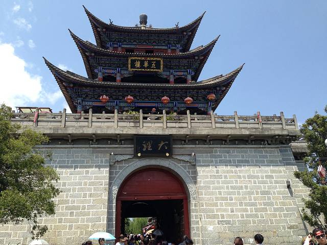 从火车站到大理古城,有一趟公交车,大约4,50分钟到达。古城有4个城门,我们是从南门进去的,街道干净整齐。