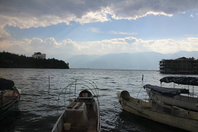 车子随叫随停,路边等车的当地人不少,抽烟的大声说话的,好在环着洱海走,一路欣赏着洱海的绰约风姿,弥补了没有环游洱海的遗憾。