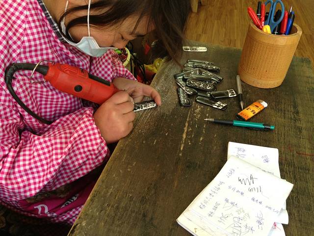 在阿妹的家里,买了村里手工制作的银镯子,送女儿的。