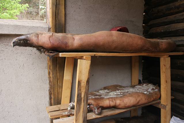 摩梭人的家里都有这样一个架子,存放腌制的猪肉,猪越多说明家庭越富有。