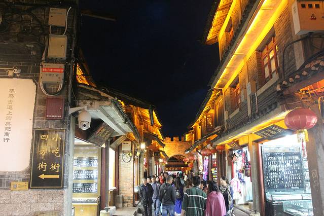 7:45,天还没亮。游人不多,客栈大门紧闭,有几个小饭馆冒着热气。