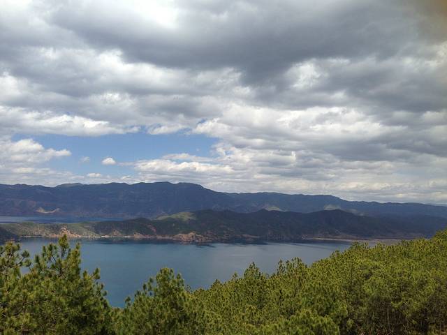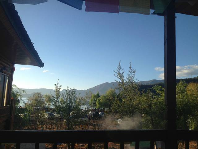 从窗户里向外看,美美的,树的后面是泸沽湖,真的就想这样一直看下去
