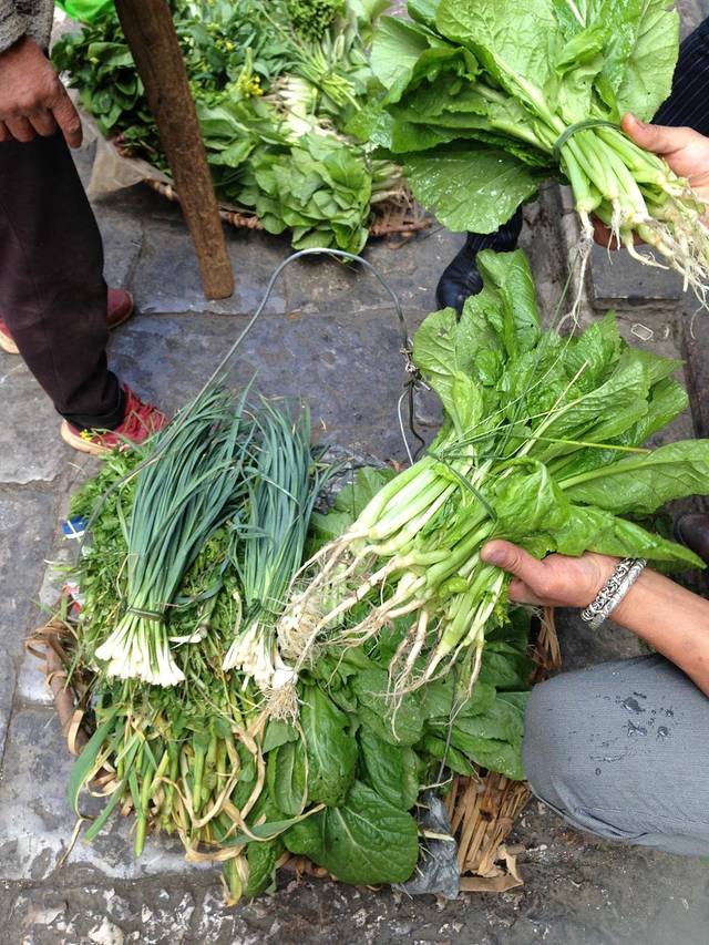 小街上有新鲜的蔬菜,如果多住几天就开伙了