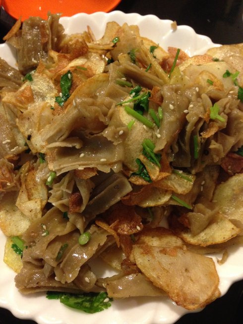 第一天住进酒店已经是晚上七点多,一家人踱到附近的小街上吃了一顿小吃,无非是刀削面、栲栳栳、拨烂子啥的,基本都是面食。小女嘴刁得很,基本上只吃吃过的东西,记得在西安的时候在回民街愣是没怎么张嘴,结果一家人吃了三天的赛百味……为了照顾她小人家,出门在外,吃总是我们的弱项,今日也是,草草填饱肚子,回来便早早安歇了。