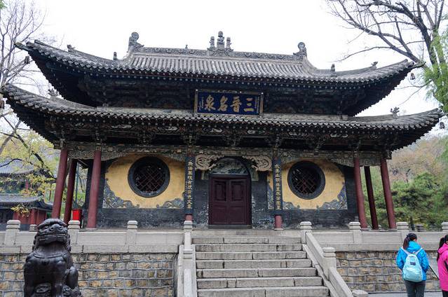 水镜台后面,上书匾额“三晋名泉”。像不像大闹天宫里孙悟空变的小庙,后面来跟旗杆就齐了。
