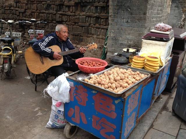 城内的客栈民宿有很多都是在老式建筑的基础上改建的,价格不菲,像平遥客栈那样的五星级酒店更是有特权可以把车开进来。我们住的是一间新建的两层小楼式样的小店,虽然不见古朴的砖瓦、历史的沉淀,但位置闹中取静、屋里干干净净,基本能满足我们的要求。