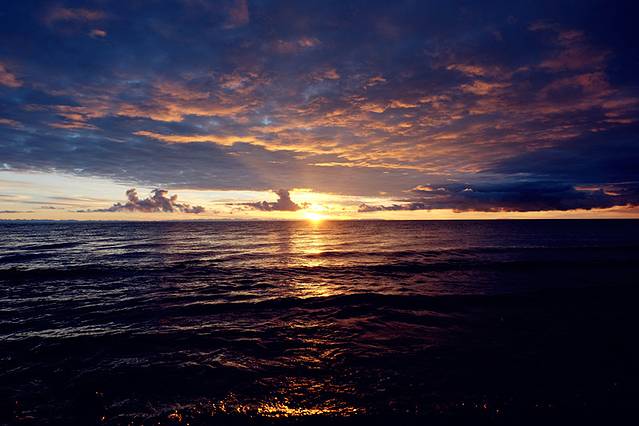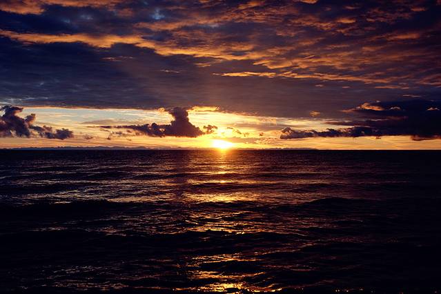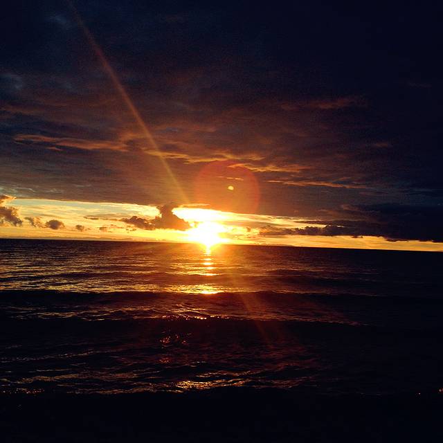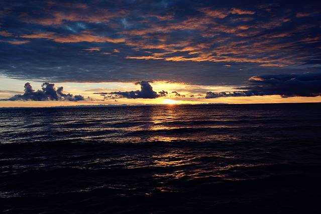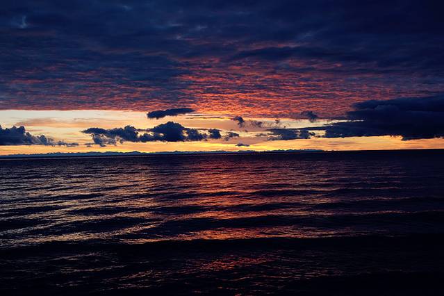 离开暖和的被窝(有电热毯),披上外套,爬到床头先来帘子,已是红霞万丈,昨晚还在担心会不会因为下雨就看不到日出了,幸运的是太阳穿破厚厚的云层倔强的生气,依然把温暖的阳光洒向这片纯净的湖面。