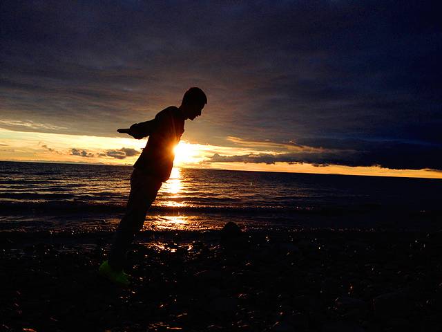 我先起床喊起了其他两个小伙伴,坐在湖边看日出,听湖水流淌......