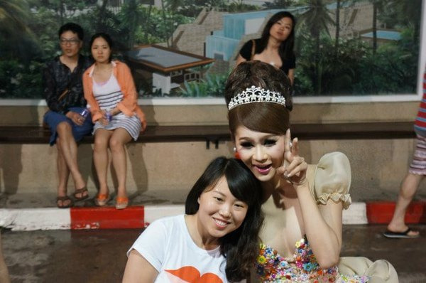 那天晚上要去看人妖秀,小小的兴奋,虽说是第二次来泰国,但长那么大却还没见过人妖呢,人妖表演不能拍照,人妖个个都好美,特别看中2个,一个傻傻的,会自己傻笑,跳舞不咋地,像打酱油的,所以很Q,一个好美,好像是台柱,像白雪公主,但我严重怀疑她们都是女人诶,因为包那么牢,都看不出端倪,大家懂的。。 也许现在泰国经济发展迅速,人妖已经不如以前那样有供给了,供不应求,又要发展人妖业,搞些女人过来表演一下应该也看不出吧