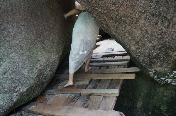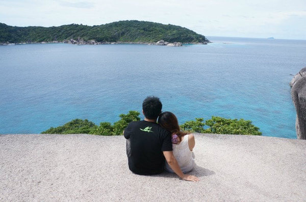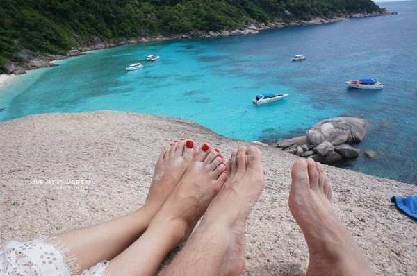 要看到斯米兰岛主岛的全景需要登上位于高处的view point,view point在山上,自然就少不了爬山了,上山的路并不好走,正常的台阶也并不多,很多时候需要攀登一块块的石头网上爬,那天,我很遗憾的穿着长裙。。赤着 脚在石头上走,很痛,无数次被粗糙的岩石刮到.