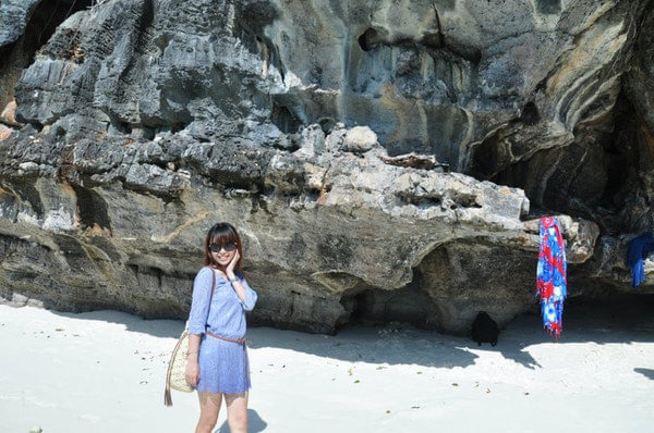 在房间小憩片刻,捯饬捯饬便来到railay西岸,上午的阳光不烈,刚刚好,人很少,适合凹造型拍照,10点一过,老外一个个起床吃早餐然后来到海岸日光浴,10点后的阳光慢慢开始凶猛,但紫外线应该不强,适合在海水中玩水,然后让阳光把头发烤干。