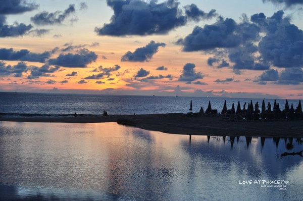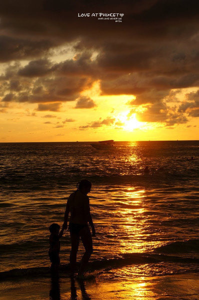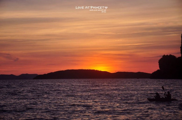 回到酒店已经接近傍晚,因为就是想去看一眼卡伦的海滩,又花了惊人的200B乘taxi从KATA赶往Karon(普及的交通真是坑爹,没有公交,Taxi和TUTU一个价,taxi也就7 8分钟的车程,要知道40多快人民币能在上海坐到多远丫),幸运的是,我们赶上了卡伦的落日,太阳刚好开始西坠,金黄色的余晖弥漫了大半个天空,须臾,落 日已经全部壮丽沉没,留下的霞光尽情地炫耀她那最后一刻的斑斓锦衣,渐渐的东方天际由黄变红,由红变蓝,不一会儿,天就黑了。