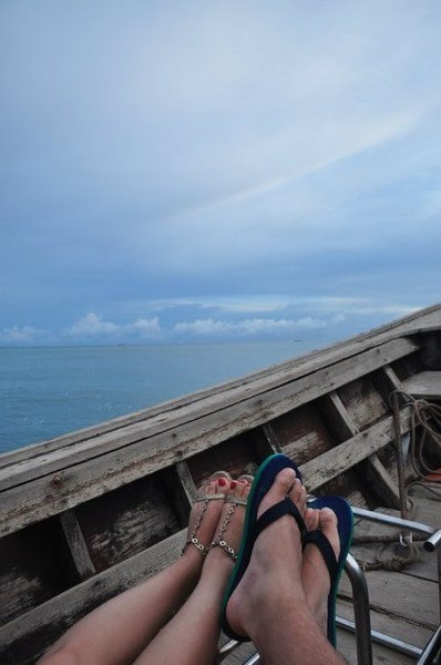 到达甲米是日落时分,太阳的炙热不在,在长尾船上远远的眺望了railay west的落日,风吹在身上,刚刚好的温度,我们把脚放在行李上,惬意的享受这一切。
