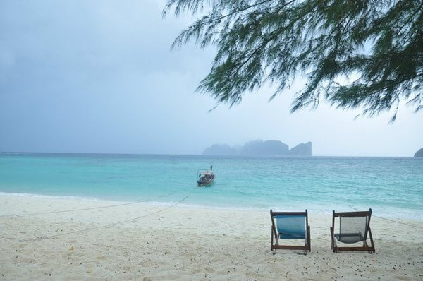 快要走的时候,天突然就阴起来,我们坐在沙滩椅上看远处的景一点点开始变的模糊,乌云一点点的压到头顶,突然就下起了小雨,但小雨无法阻止我的好心情,我录了一段video,我说这是我来到普吉碰到的第一个阴雨天,很凉爽,很舒服,海滩更加没有了人的踪影,只有我们两个,海面虽少了波光粼粼,但却多了另一种气氛,好像在为我们的离开送别,有一种难表的悲壮感。