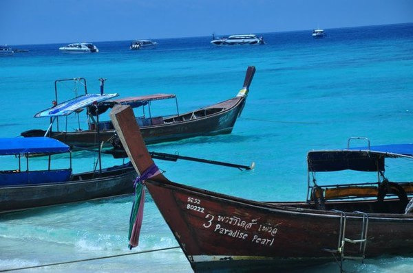 到达pp后,并不清楚long beach的方位,初到岛屿,以为可以从tong sai bay走到long beach,可是炽烈的阳光打在空中,真是不知往哪个方向迈开脚步,就在这个时候,突然我看见码头旁边有人举着Paradise酒店的名字,好兴奋的走了 过去,果然是免费接船来的,那真是个大大的surprise,踏上长尾船,我才知道原来靠步行基本上是到达不了了,一定要走的话需要1个半小时的步行时间,平时走走倒是无所谓,可如果是那么凶猛的太阳,估计走到也一 定倒下了。