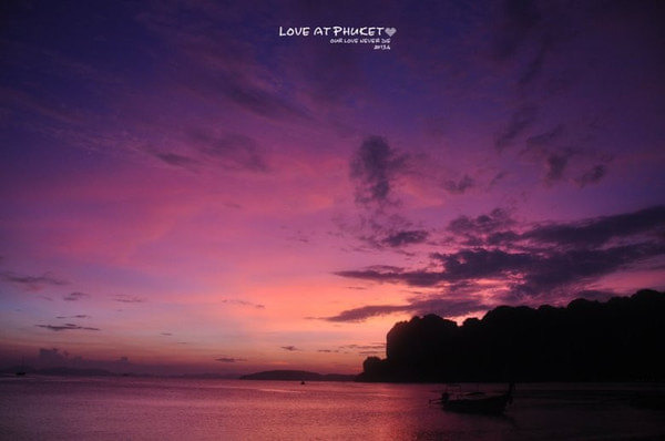 不知道是雨水过后的关系还是别的什么原因,这天的晚霞特别特别的美,如五彩的锦裘般,覆盖着整个海面,从热烈的金黄再到紫色的霞光,让海水也染成了紫红色。 我说,昨天的晚霞不如今天,原来,甲米每晚的日落也不一样,就像每天上演不同的大戏,让你总能充满期待,然后猛然给你万紫千红的惊喜。
