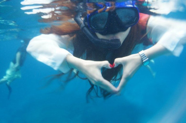 皇帝岛的海水很蓝,但能见度却不高。和我们一同参加深潜体验的是一对广东人,在水下还牵错了人,真郁闷,氧气瓶超级重,压的我直不起腰,特别是从水下上来时 简直是在用90度鞠躬姿势走路。皇帝岛的深潜不推荐,鱼的种类不多,数量也很少,就当是一次全新的体验吧,只是耳朵和头都足足痛了两天,我们的深度只有五 六米!好佩服身边那些能够潜到20米以下却还不满足PADI初级证的朋友。