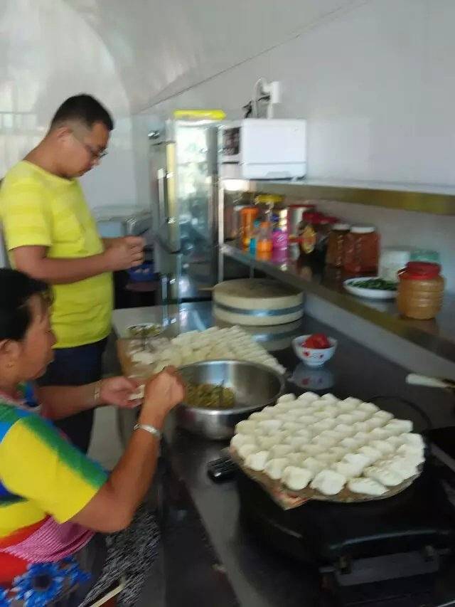 再者就是厨房,特色的窑洞厨房,干净明亮,没有半点的油腻感,特别是还有消毒柜,所有的顾虑全部打消,主人家正在捏饺子,旱地韭菜芹菜猪肉馅,一闻太香,定了我们也吃这个了