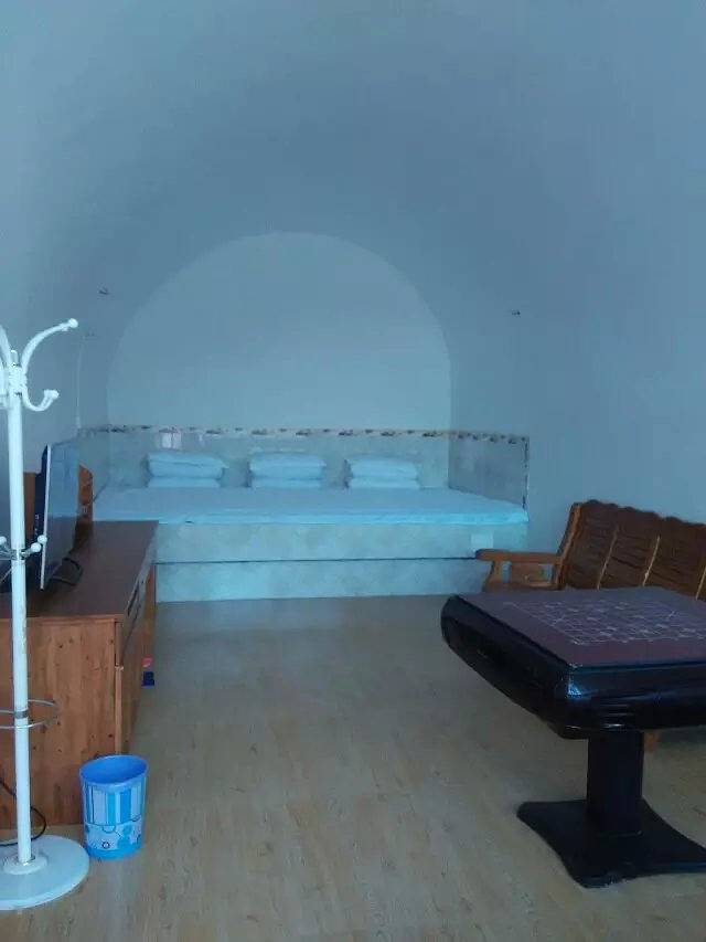 这孔窑洞没有卫生间,但院子里的太阳能洗澡间和卫生间可以使用,价格100,瞅见没还有著名画家的油画呢