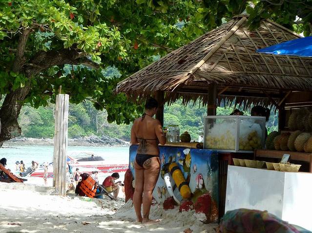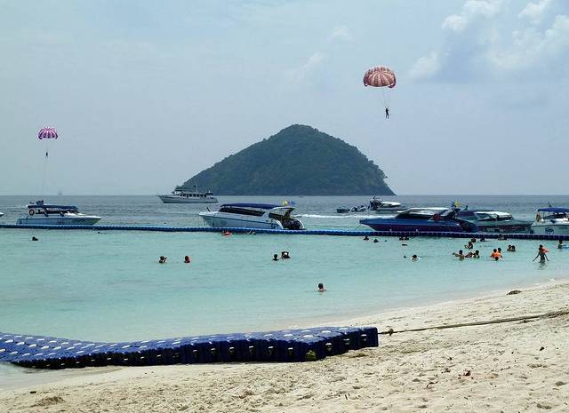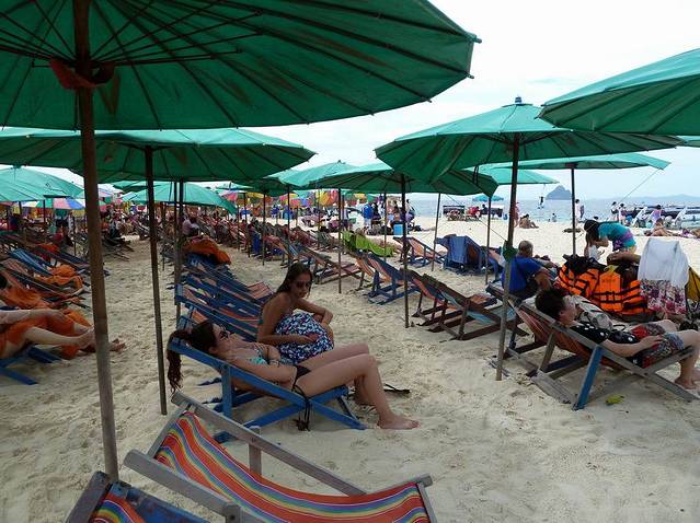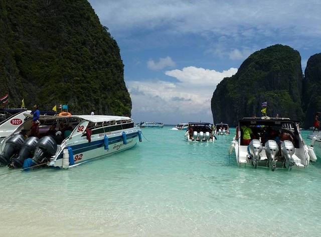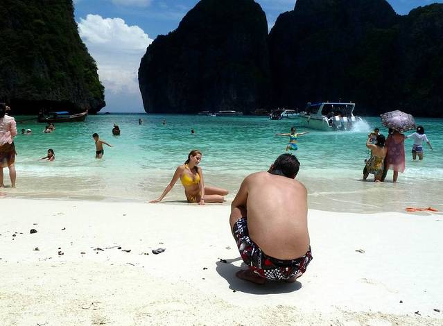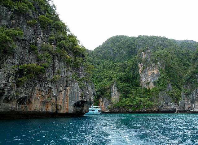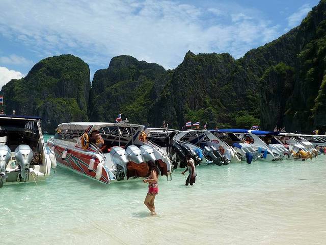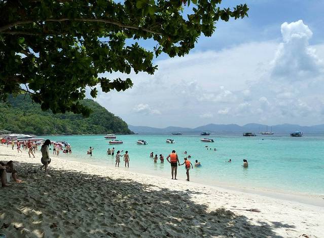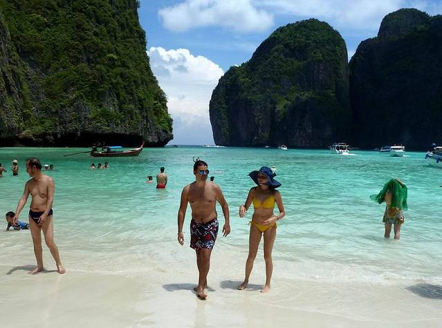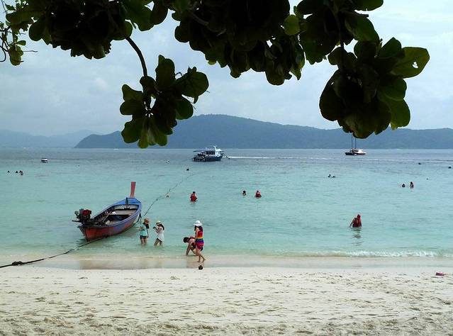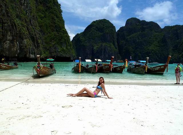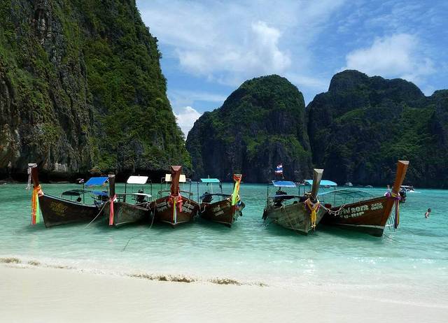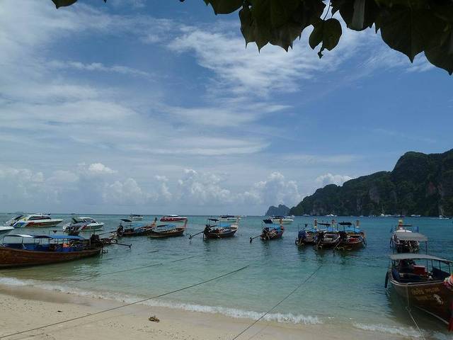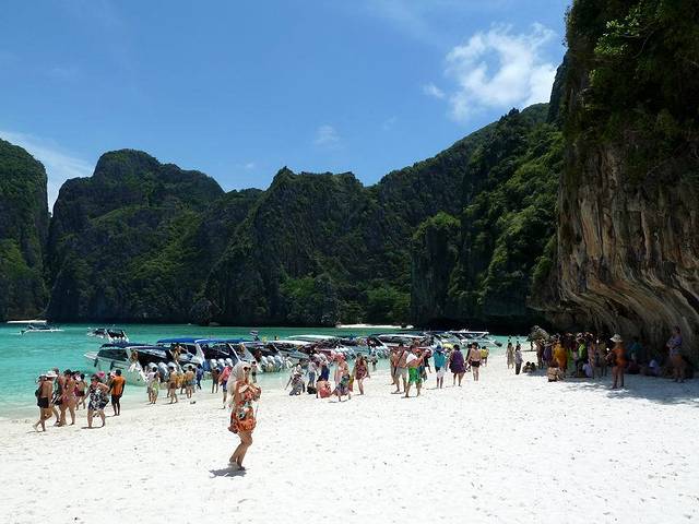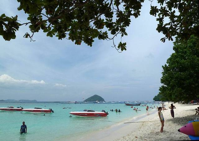 小PP岛西南面的情人沙滩,三面环山,一面向海。因为曾经有一部由《泰坦尼克号》男主角李奥纳多主演的电影《海滩》在此拍摄,而令其名声大振。