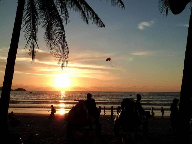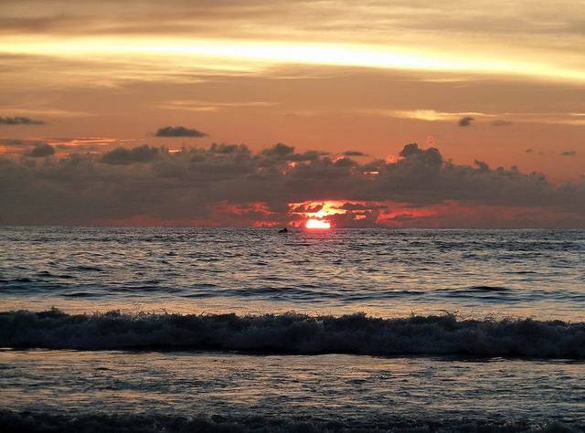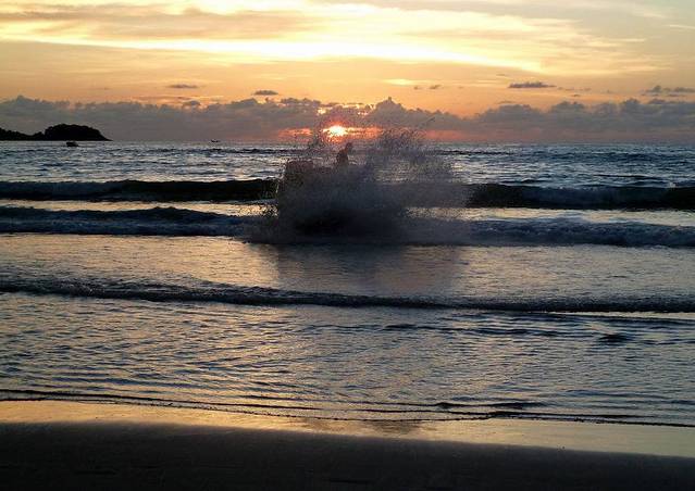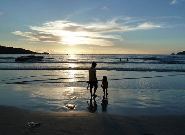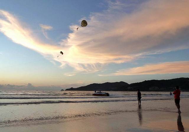 芭东海滩有游泳、太阳浴、香蕉船、帆板、游艇等各种海上活动项目,而这里的海水清澈,水中生物种类繁多,是亚洲地区公认的最优良的潜水地之一。不知为什么,旅行社都不在芭东海滩安排活动。我认为芭东海滩就是普吉岛拍落日的好去处,根本用不着花钱去神仙半岛或卡伦观景台看落日。照片摄于芭东海滩。
