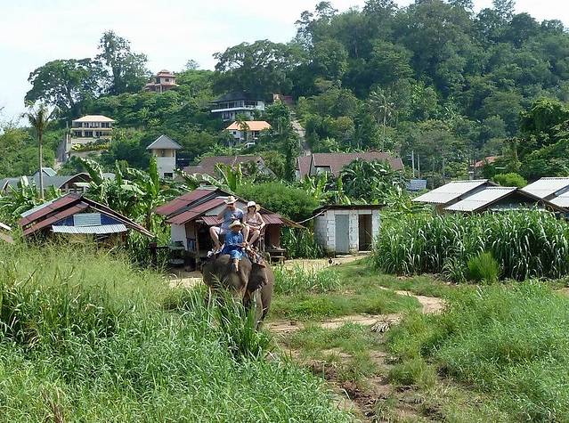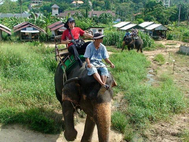 离开蓝钻珊瑚岛,导游领我们去骑大象。据说过去普吉岛上的丛林骑大象时间是两个小时,以后随着游客日益增多,时间越来越短,现在只是象征性的骑5~6分钟。骑大象每人要准备20铢小费