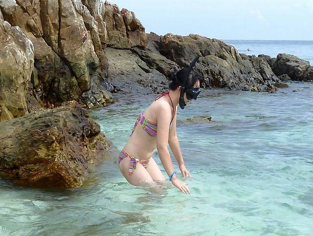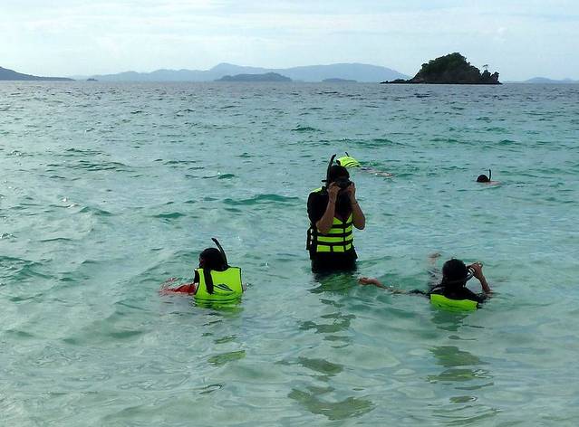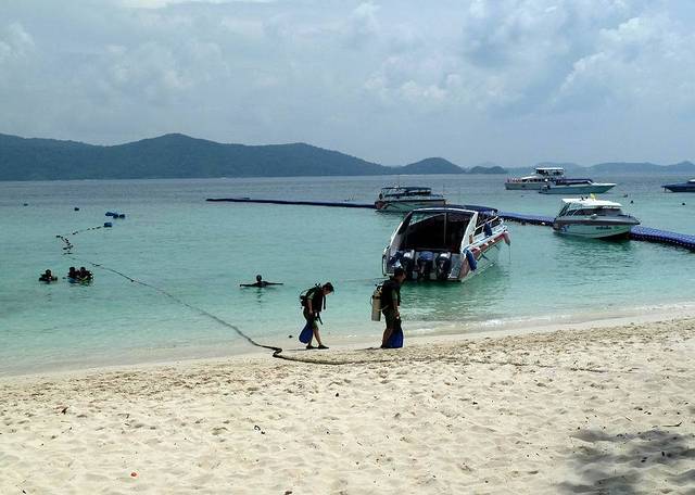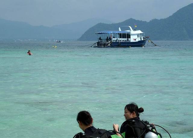 很多人参加了蓝钻珊瑚岛的自费深潜活动,这里不像塞班岛等地,深潜还要经过培训,交钱就可以参加(年龄大的拒绝参加)。深浅2100铢/人(人民币440多),拍照是750铢,一共差不多600多人民币。