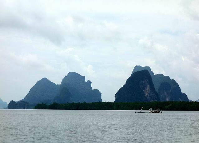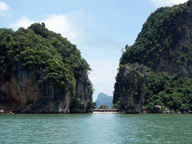 普吉的美丽除了阳光沙滩外,另有一个重要原因是其喀斯特岩溶地貌,跟中国的桂林属于同一地形特征。岩溶地形若在陆地就成了光怪陆离的溶洞,若在海上就成了一个个陡峭独立的盆景。