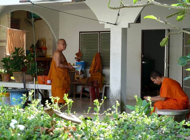 海龙寺内供奉着两位受人们敬重的僧侣的塑像,其中銮朴成僧侣在本世纪初是该寺庙的住持,他的接骨技巧颇富盛名,曾被授予“特别圣职”的名号。照片摄于海龙寺。