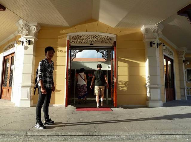 当天的第七站是普吉岛免税店。免税店主营鳄鱼皮具,还有手表、珠宝和象牙制品等。尽管领队一再强调中国海关不允许带象牙制品,但不少团友还是买了象牙坠子等象牙制品。图为免税店正门。