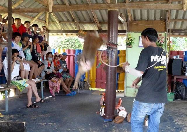 骑过大象,就在这个大象村,又观看了猴子表演。只有一只猴子,表演说不上精彩,也还要交20铢小费。