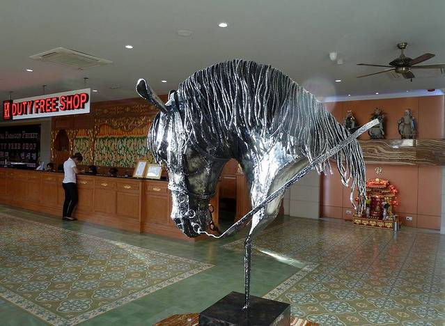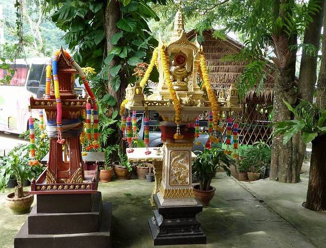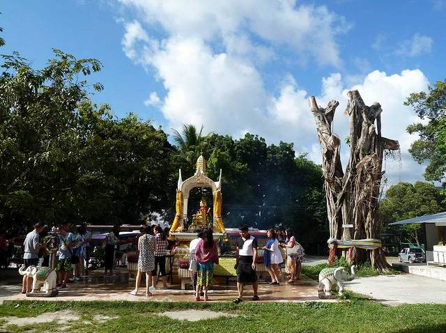 今天的行程,除了参观一个海龙寺,全部是购物。早餐后,我们的第一站是游览普吉岛香火最盛的海龙寺。海龙寺附近的四面佛,香火同样很盛。佛像第一面求平安、第二面求事业、第三面求婚姻、第四面求金钱。烧一套香烛,插一小束花在佛前,祈求神灵保佑。但每人要交20铢香钱。