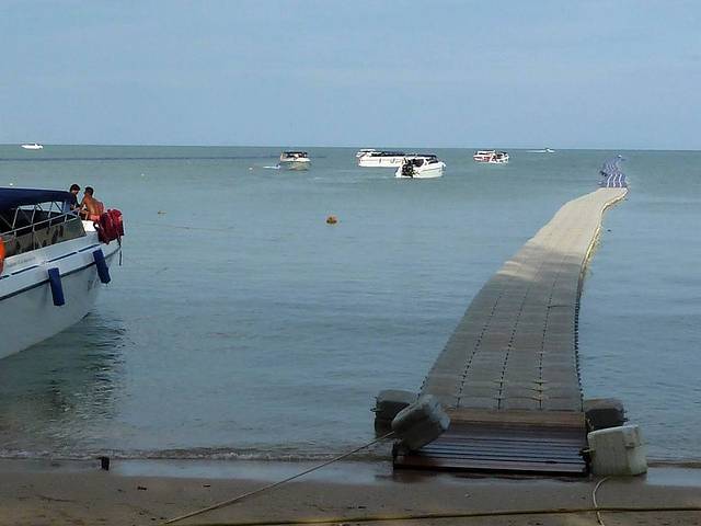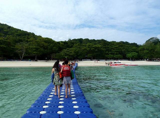 今天的主要行程是大小PP岛和皇帝岛,因为导游昨天推荐增加的自费项目(翠竹岛+大堡礁600元\人)没有人参加,因此原定7:00出发,被改为9:00,到达游艇码头,已经10:00多了。因为潮水原因,上游艇要上浮桥走很远。