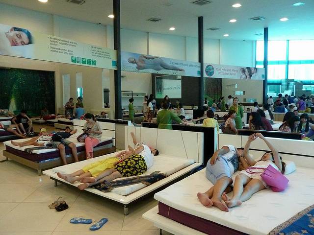 当天的第四站是乳胶加工店。这里的乳胶枕头和床垫倒是挺好的,但价格不菲,枕头600人民币一个,床垫6000~10000人民币一件(分单人和双人)。尽管如此,国人购买还是很踊跃。奇怪的是,所有的购物店,没看到一个外国人!?