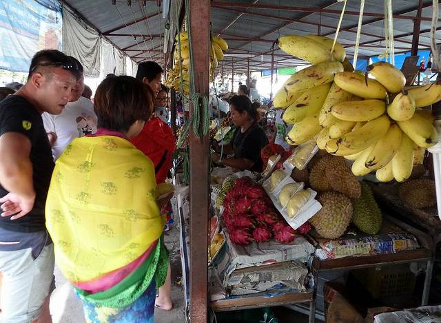 吃晚饭前,再买些水果。这里除了常见的椰子、芒果、榴莲以外,还有臭豆、红毛丹、酸角、兰撒、腰果等国内比较少见的东南亚水果,全部廉价出售。
