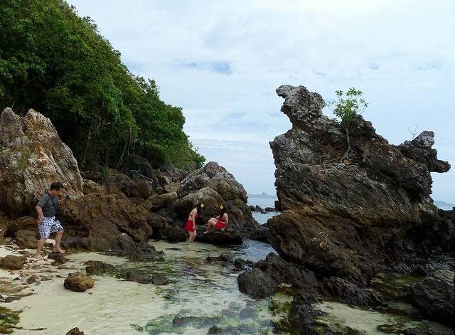 岛上最引人入胜的是岩石滩,因为在这里不用浮潜、不用游泳,站在浅水处就可以很清晰地看到热带鱼群。