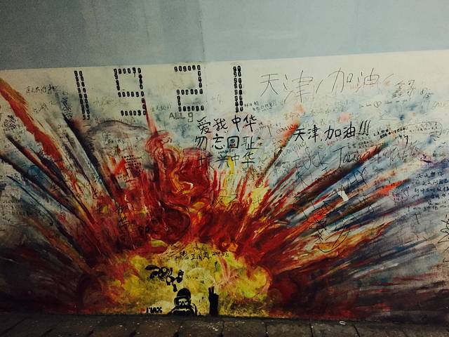 这张很应景,正好一个礼拜前天津塘沽爆炸,上面写着天津加油。