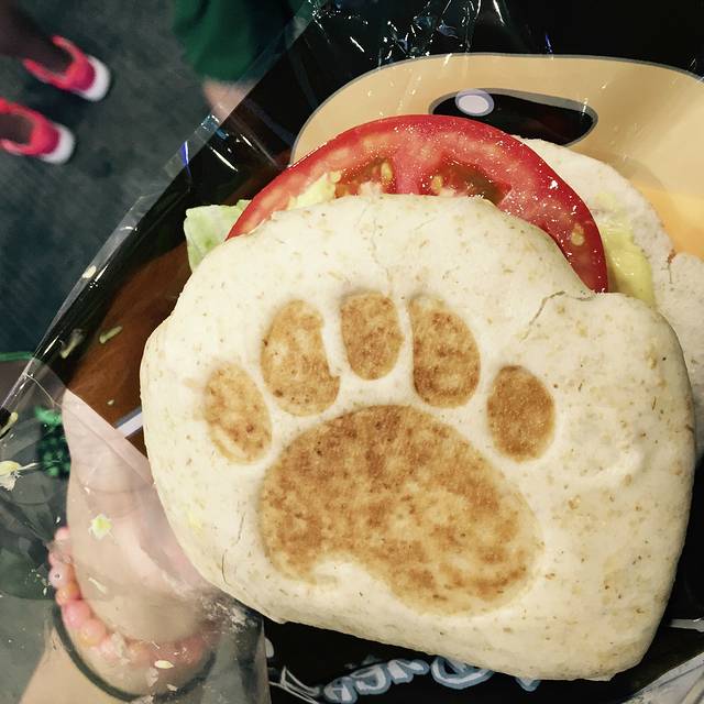 这家店在中山路大陆商厦边上,三福时尚门口出来靠右手边。熊手包很好看,我们要的招牌塔塔酱鸡腿排全麦熊手包。我感觉很像肉夹馍,只是里面夹的鸡腿排而已。