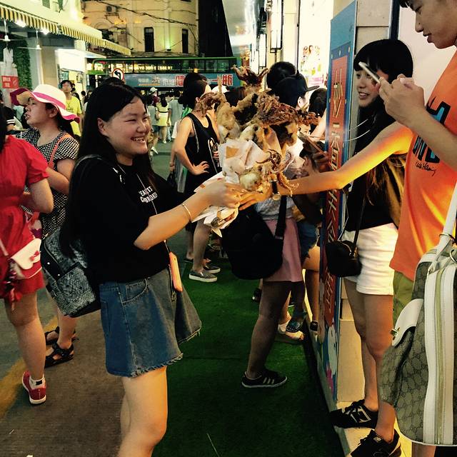 旁边的妹子们买了好几串大鱿鱼,手上都快拿不住了......