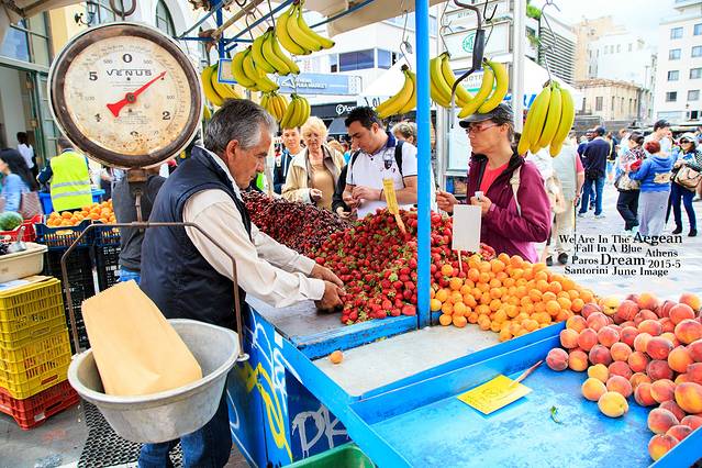 Athinas街林立着诸多餐馆和酒店,往前走一段还会看到当地的菜市场。