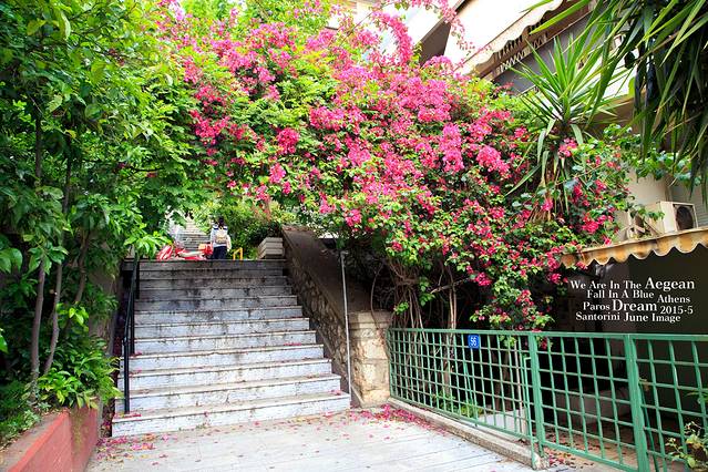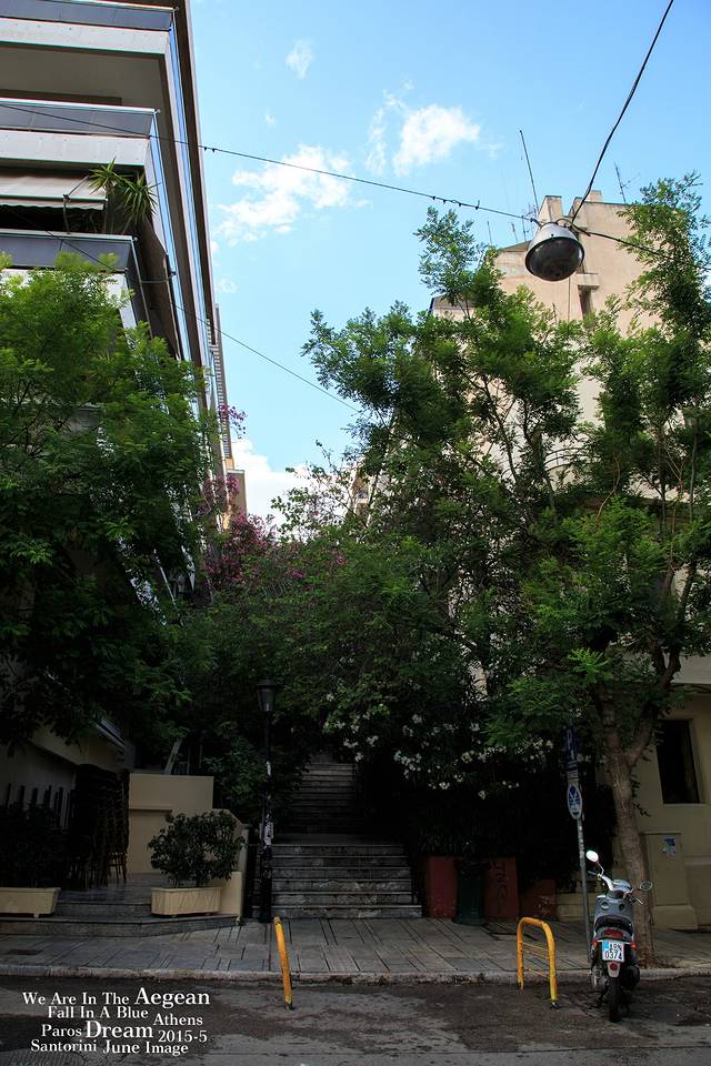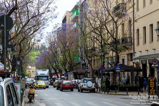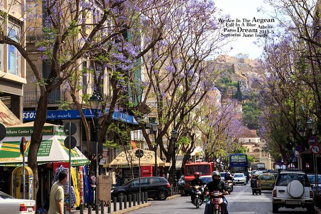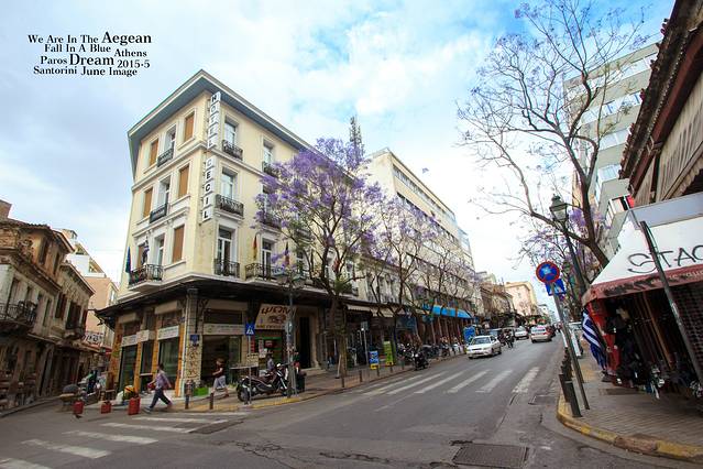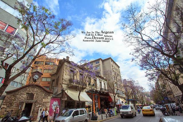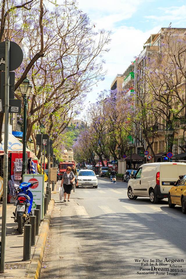 在Monastiraki中心的广场能看到一条开满紫花的街道,这就是Athinas街。街道本身没什么好逛的,只是漫步在郁郁葱葱的紫花之下别有一番风味。这紫花根据骏爷猜测应该就是蓝花楹。