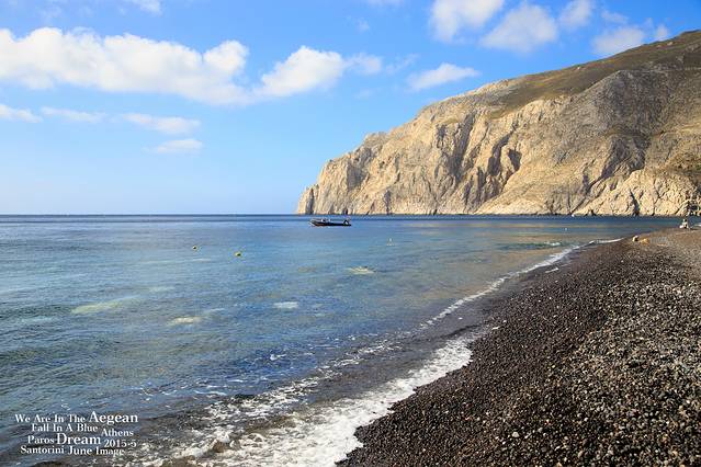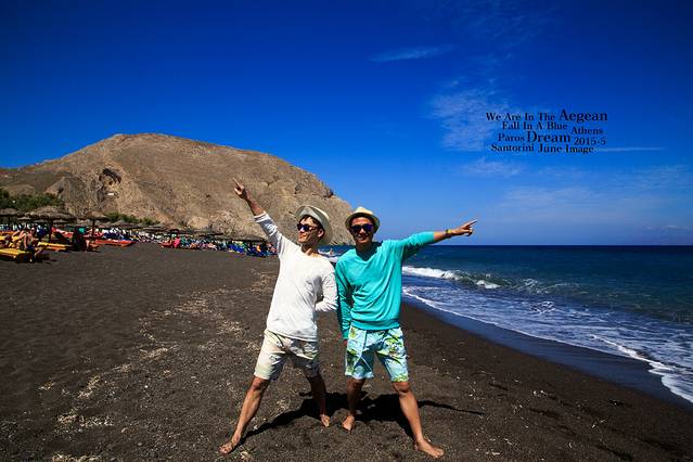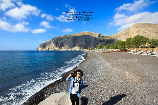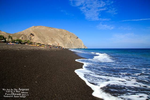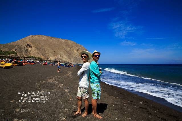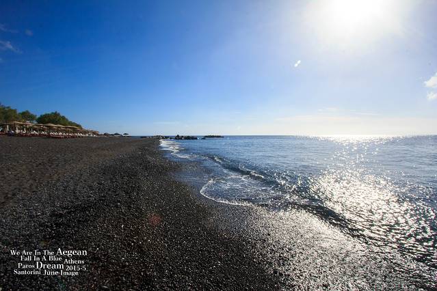 当kamari黑石滩第一次映入眼帘,阳光将海水与山头点亮,也将我彻底融化。