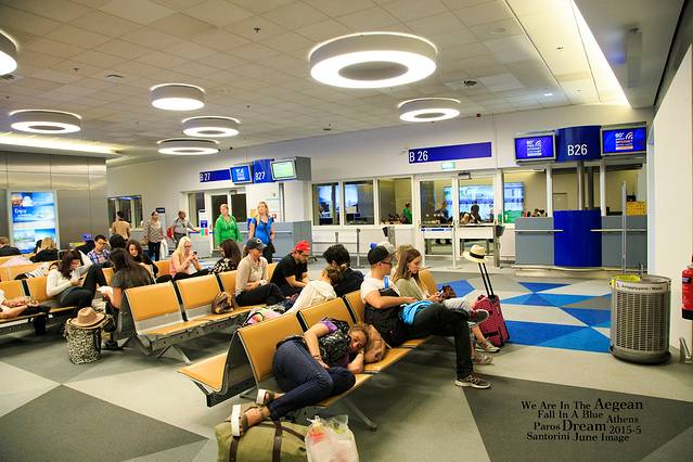 早上四点多到达登机口,来自世界各地的游客们早已经躺得很七竖八。5点多的飞机仍有这么多乘客,可见圣托里尼有多么的热门,到了旺季肯定是更加人潮汹涌。
