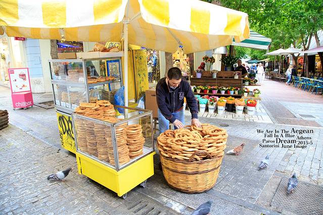 雅典街头十分有特色的面包,鸽子一个个虎视眈眈。出发之前还说一定要尝一个的,可是现在只有一个想法那就是赶紧去买衣服,不然真要抖着回国了。